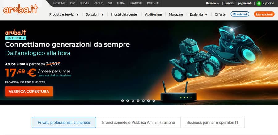 - Uso di SSD/Flash storage: Aruba dichiara l’uso di dischi SSD per “latency ridotta”.