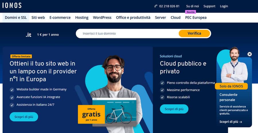 - IONOS: risorse abbondanti (500 GB), protezioni avanzate (DDoS, antispam), uptime garantito e forti promozioni. È ideale per progetti mission-critical, ecommerce avanzati e siti multilingua ad alto traffico.